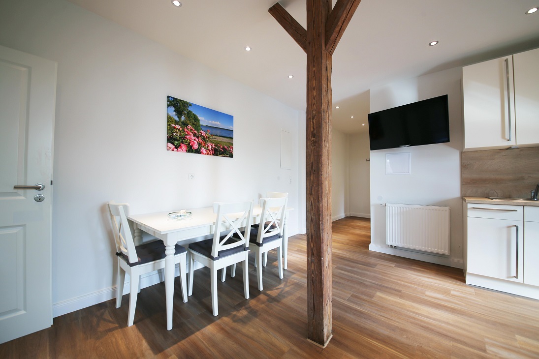 Verbringen Sie Ihren Urlaub in einer Wohnung mit besonderem Flair. Die offene Balkenkonstruktion sorgt für eine behagliche Atmosphäre, in der man sich sofort zu Hause fühlt.
