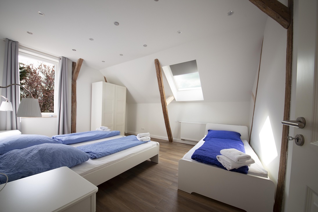 Herzlich willkommen in der Wohnung BEA 3! Diese großzügige Dachgeschosswohnung vereint ländliche Gemütlichkeit mit praktischer Raumaufteilung. Mit ca. 67 m² und sichtbaren Balken bietet sie ein helles, freundliches Ambiente und ist die perfekte Lösung für alle, die getrennte Schlafbereiche zu schätzen wissen – sei es die Familie mit Kindern oder das Montageteam.