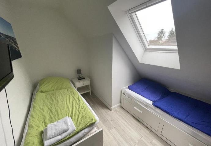 Vielseitige Aufteilung: Mit 2 regulären Schlafzimmern, einem zusätzlichen kleinen Schlafzimmer (ideal als Einzelzimmer) sowie einem kombinierten Wohn-/Schlafraum finden hier mehrere Kollegen bequem Platz, ohne die Privatsphäre zu verlieren.
