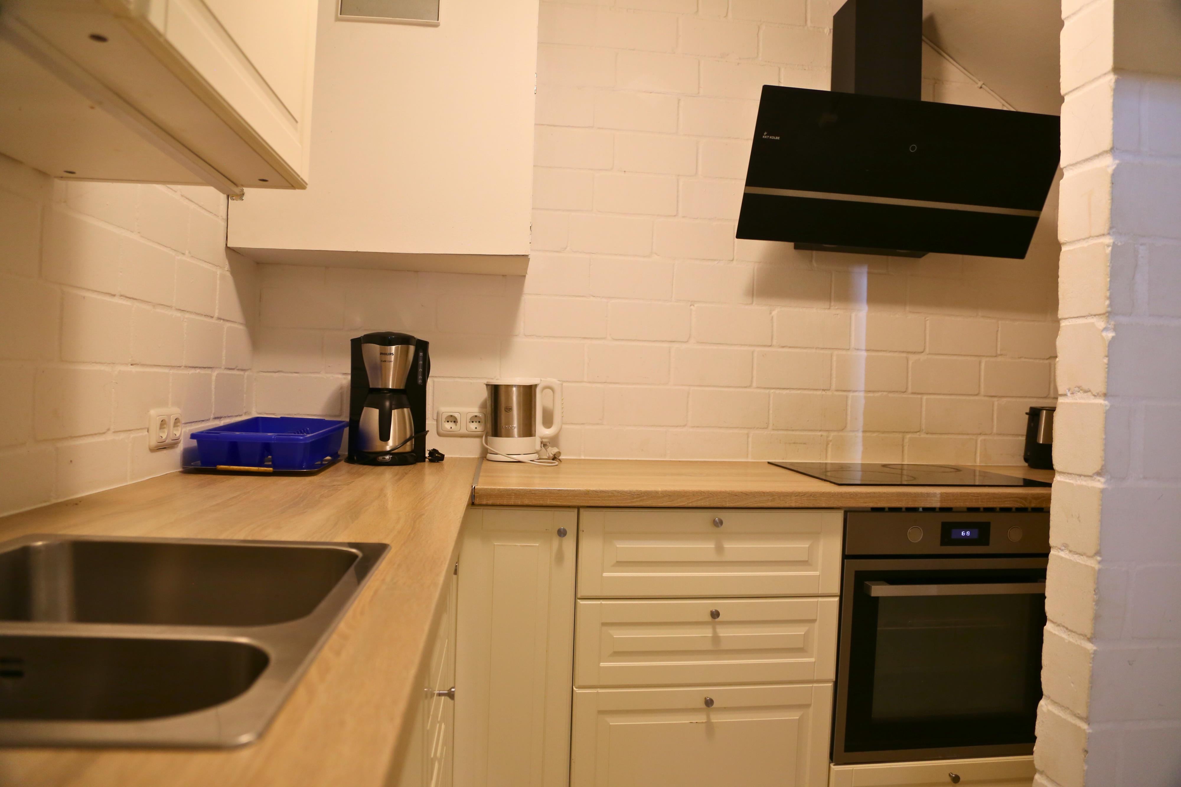 Voll ausgestattete Gemeinschaftsküche: Sparen Sie sich teure Restaurantbesuche. Die großzügige Küche auf der Etage steht Ihnen und den Gästen aus drei weiteren Zimmern zur Verfügung. Sie bietet alles, was man zur Zubereitung von Mahlzeiten benötigt (Herd, Kühlschrank, Kaffeemaschine etc.).