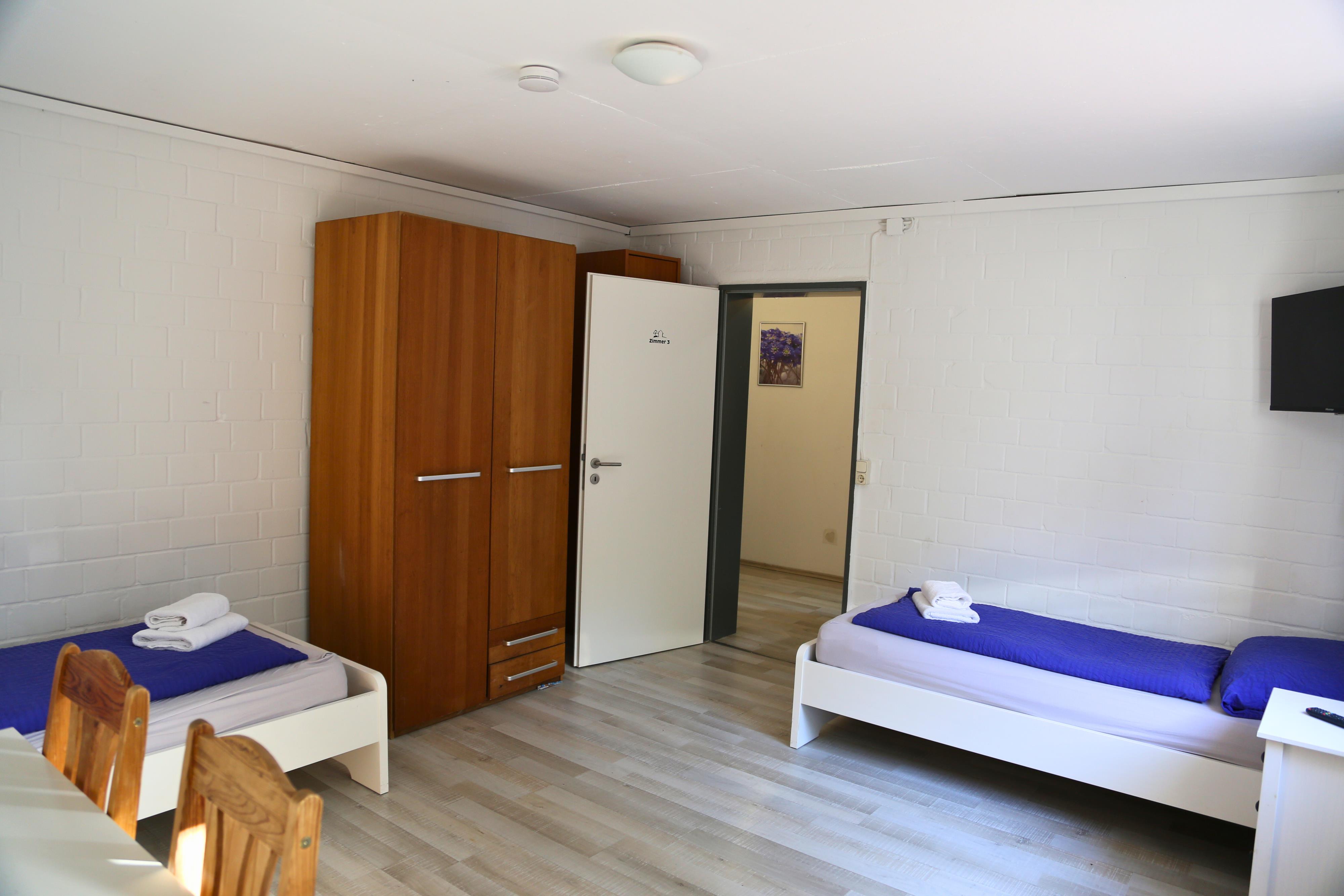 Funktionales Doppelzimmer: Ein gemütlicher Rückzugsort mit bequemen Betten für erholsamen Schlaf nach einem langen Arbeitstag.