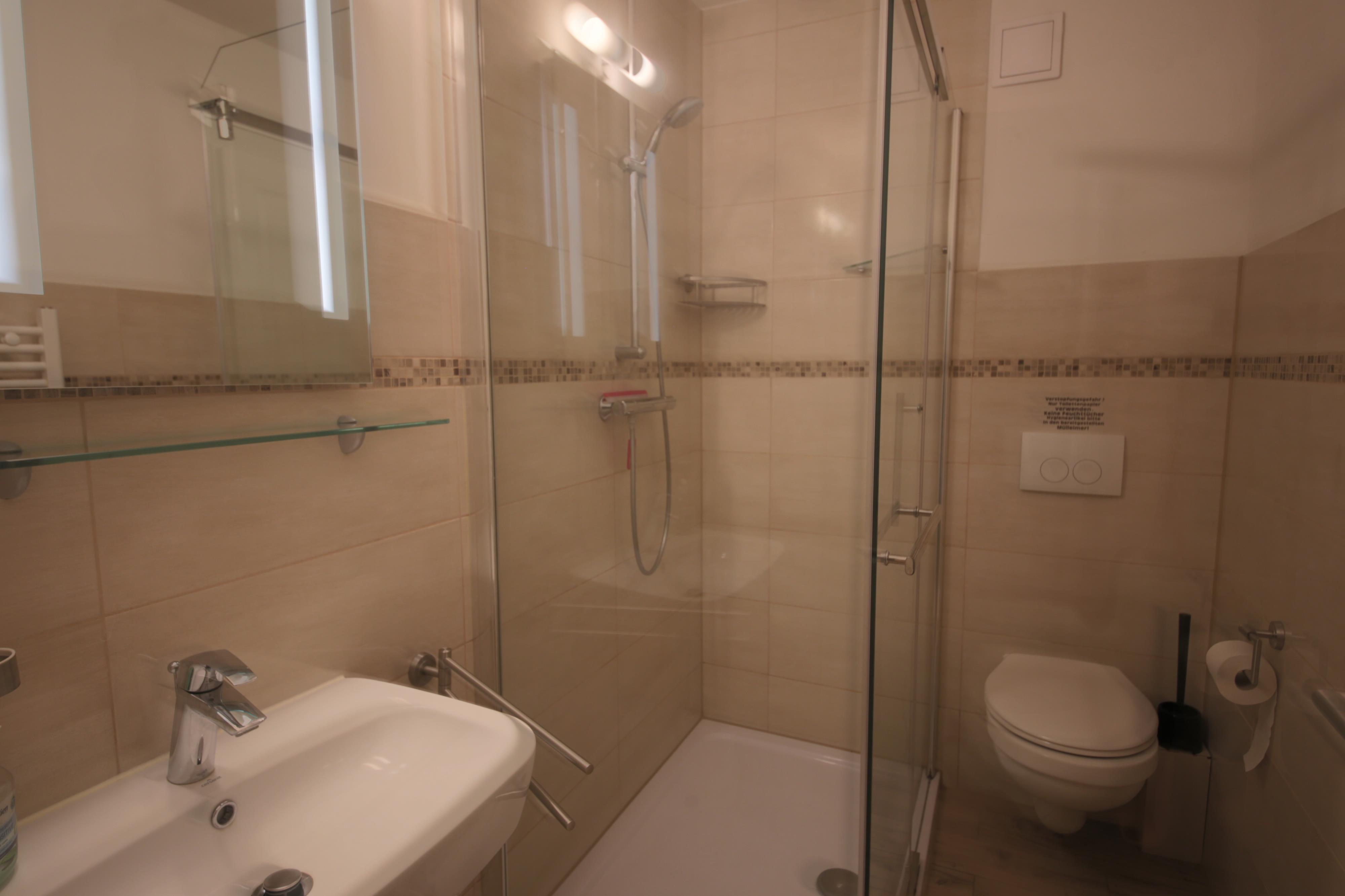 Badezimmer: Ein gepflegtes, helles Duschbad.